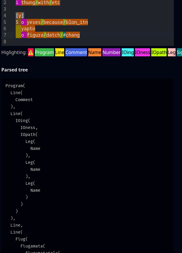 @tokens {IOness { "i " | "o " }Sunpitness { "S " }