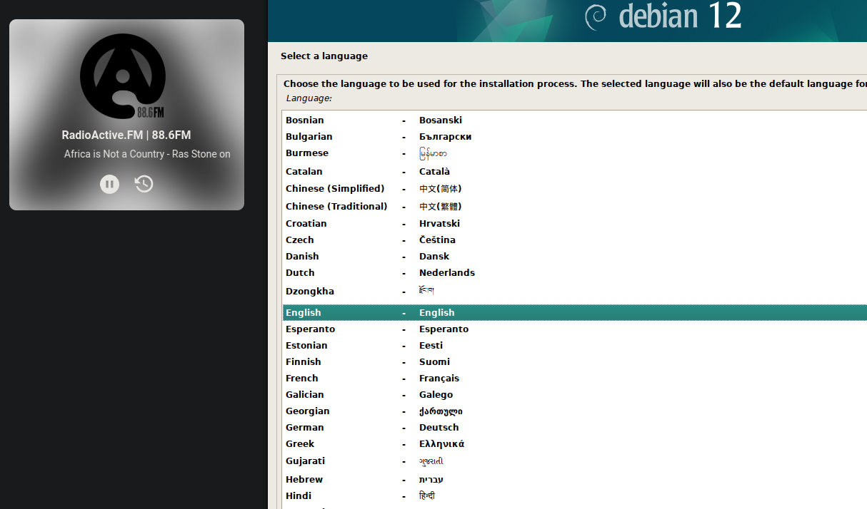 Installing doesn't have to be an emergency on a space station. Here I am, listening to music and choosing my language.